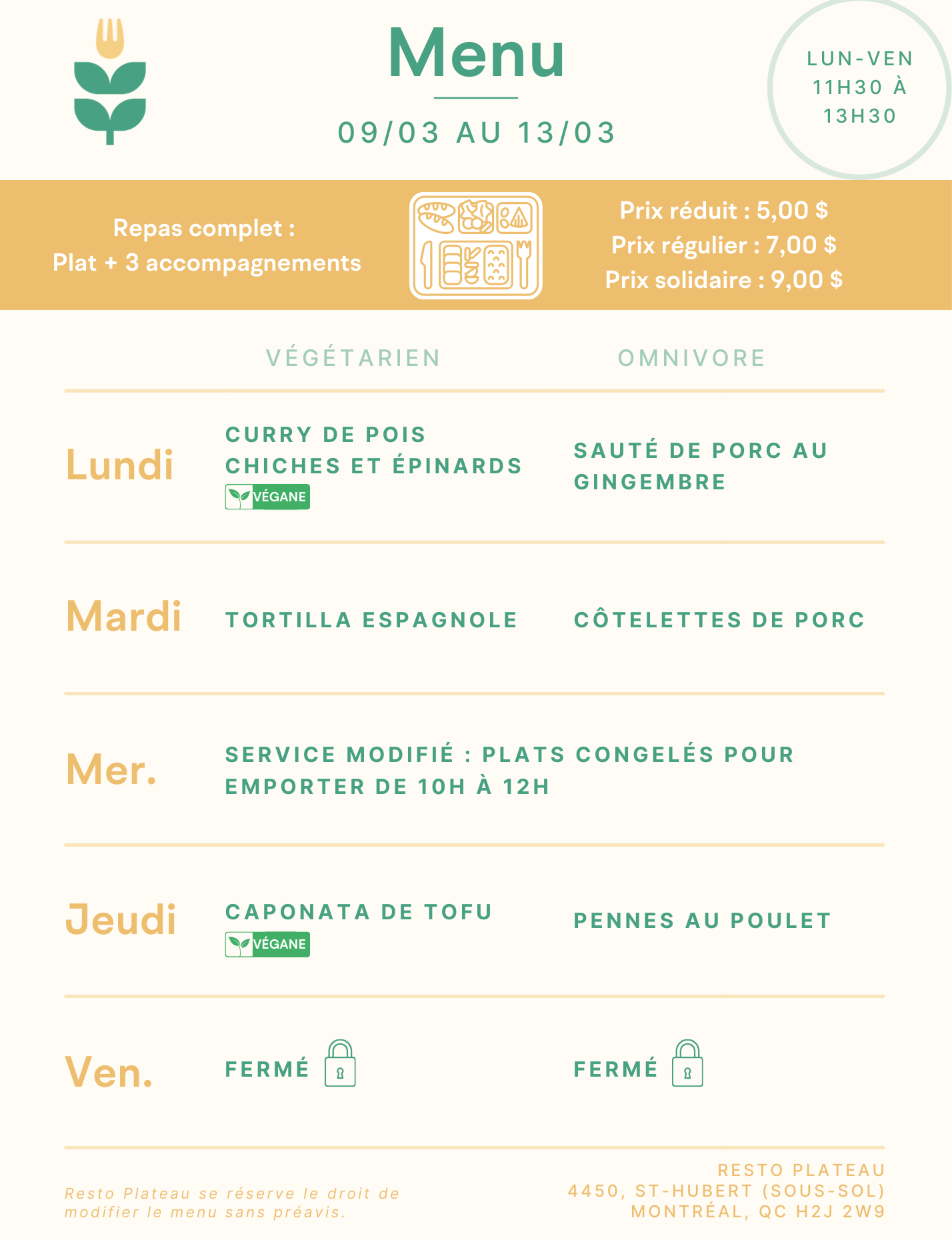 Open from Monday to Friday, from 11:30 to 13:30