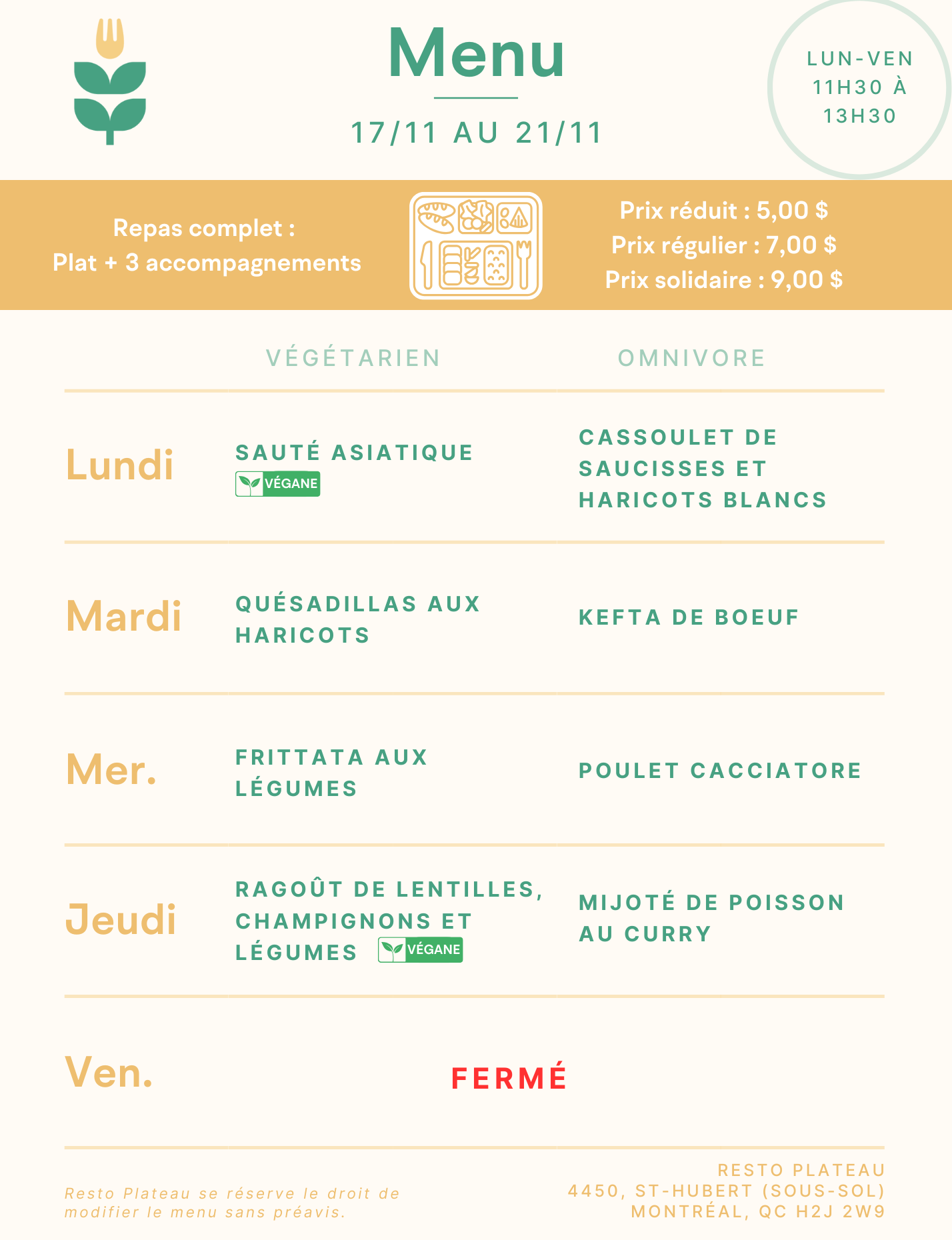 Resto Plateau est un espace de vie dynamique et une communauté inclusive. Venez déguster un repas complet, nutritif et délicieux, rencontrer de nouvelles personnes, et participer à nos activités !