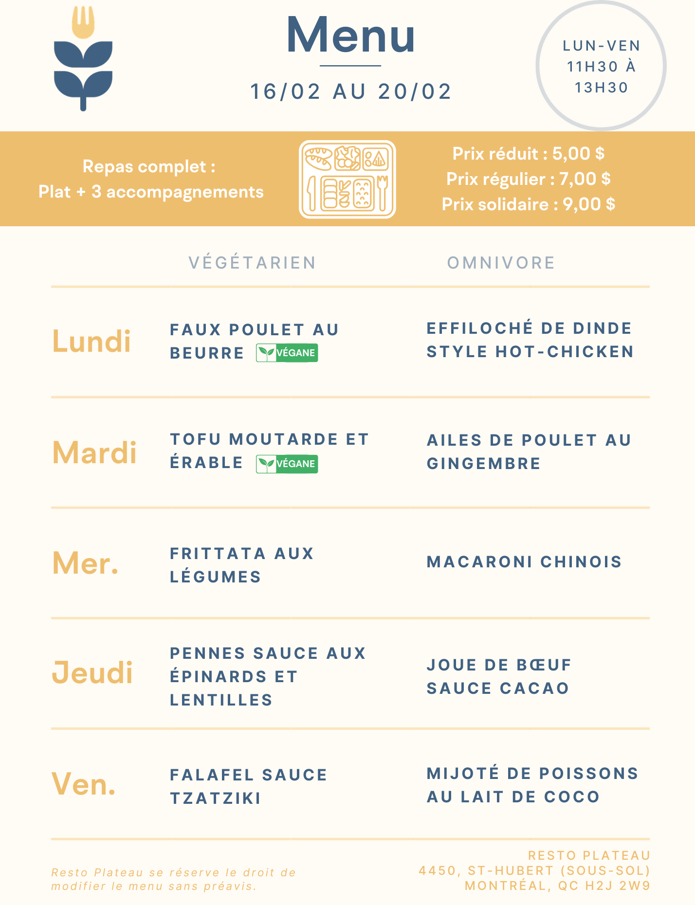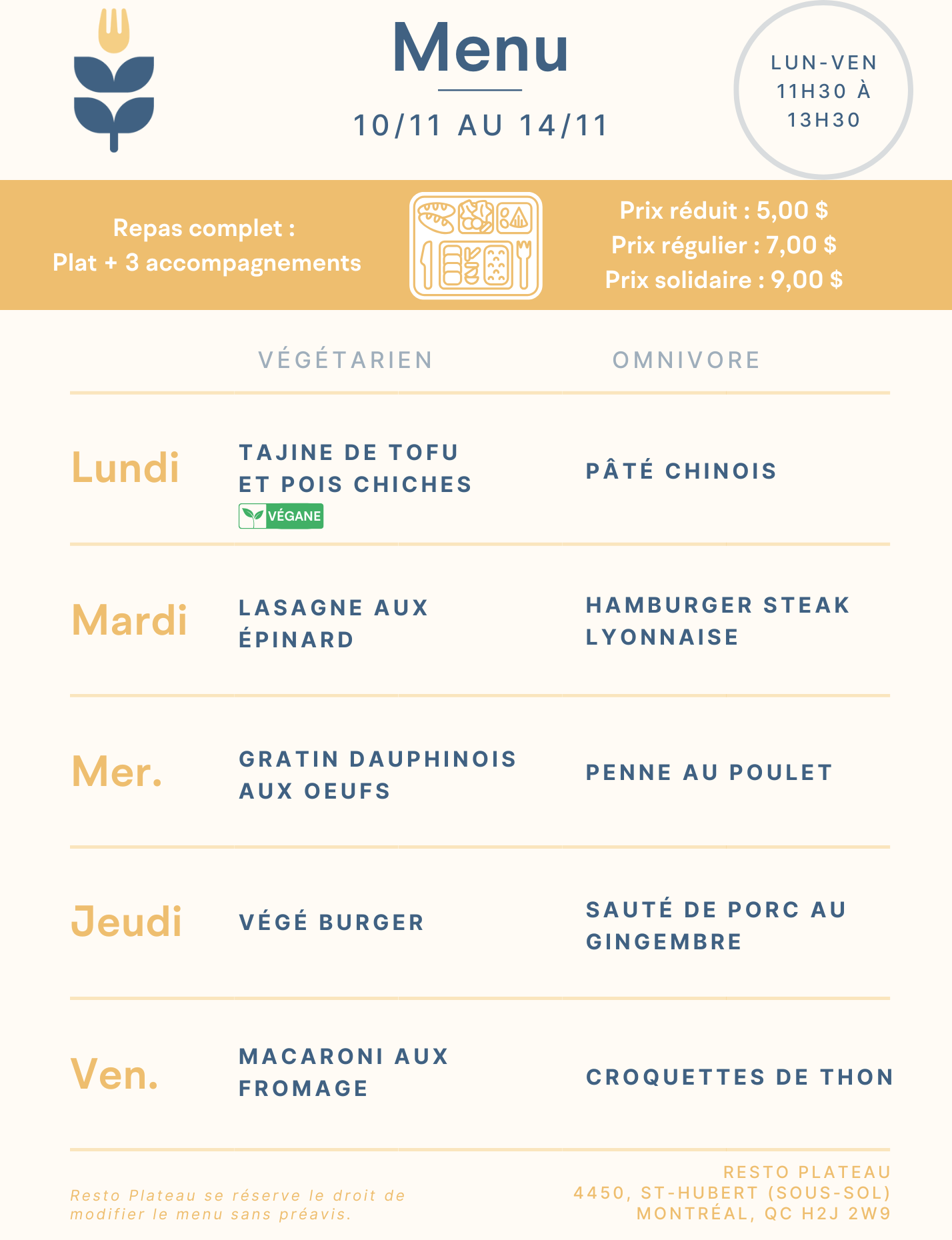 Resto Plateau est un espace de vie dynamique et une communauté inclusive. Venez déguster un repas complet, nutritif et délicieux, rencontrer de nouvelles personnes, et participer à nos activités !